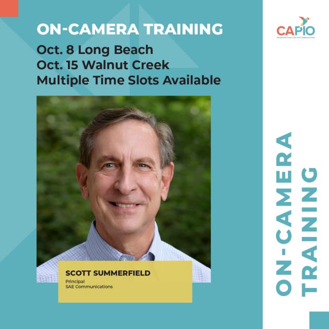 Are you new to the PIO field, or getting more media calls for a specific issue or pending crisis of confidence? Maybe you’re a seasoned communicator but want to hone your skills. CAPIO is offering a limited number of free, personalized one-hour, in-person training sessions from veteran practitioner Scott Summerfield of SAE Communications.