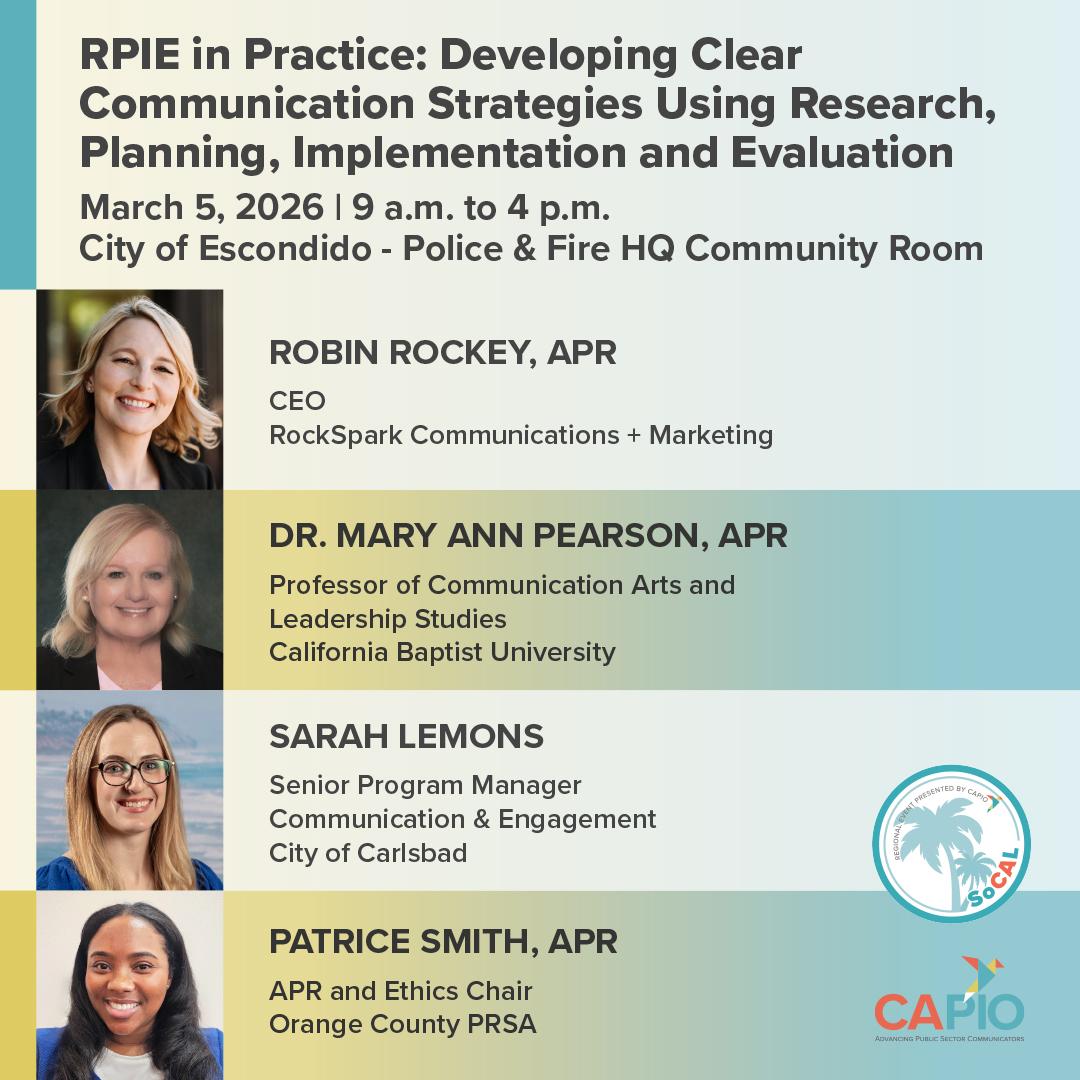 This in-depth, in-person CAPIO regional workshop focuses exclusively on the RPIE framework, Research, Planning, Implementation, and Evaluation, a nationally recognized planning model and the gold standard used in the Accreditation in Public Relations (APR) process. Rather than treating RPIE as a template or academic exercise, this session emphasizes how the framework functions as a practical decision-making tool for real-world public-sector communications.