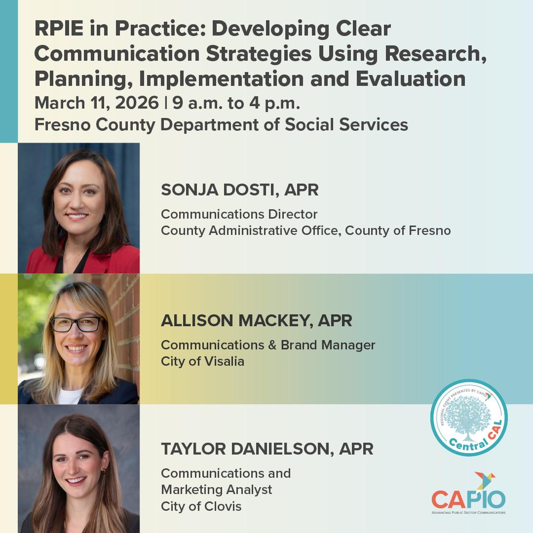 This in-depth, in-person CAPIO regional workshop focuses exclusively on the RPIE framework, Research, Planning, Implementation, and Evaluation, a nationally recognized planning model and the gold standard used in the Accreditation in Public Relations (APR) process. Rather than treating RPIE as a template or academic exercise, this session emphasizes how the framework functions as a practical decision-making tool for real-world public-sector communications.
